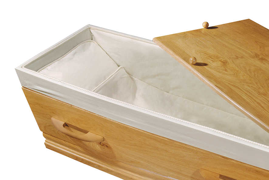 De uitvaartkist 320 Jade is een stijlvolle en hoogwaardige keuze, vervaardigd van gelakt eikenhout. Met zijn warme houttinten en verfijnde afwerking straalt deze kist een tijdloze elegantie en rust uit. Het gebruik van eikenhout staat symbool voor kracht en duurzaamheid, wat deze kist een prachtige optie maakt voor een waardig en respectvol afscheid van een dierbare.