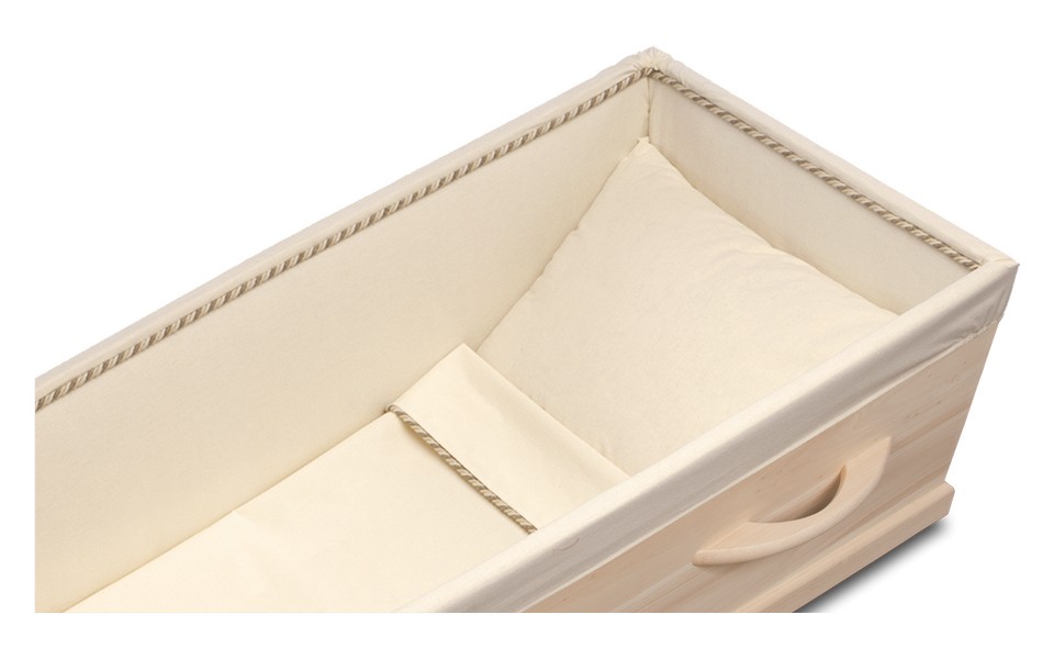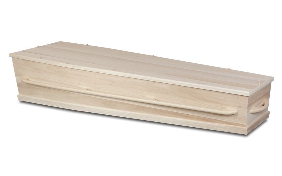 Duurzame populierenhouten uitvaartkist met lange handgreep en katoenen interieur