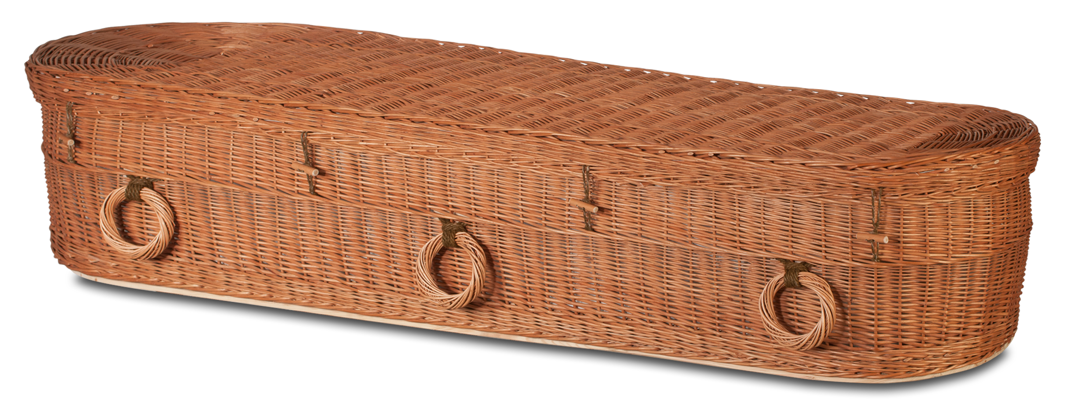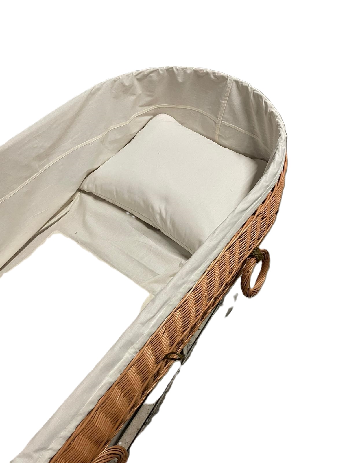 Gevlochten, fairtrade, uitvaartmand van wilgenteen met katoenen interieur en wade