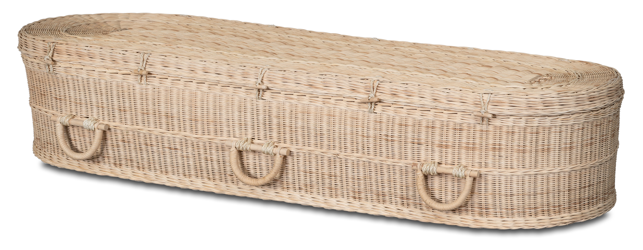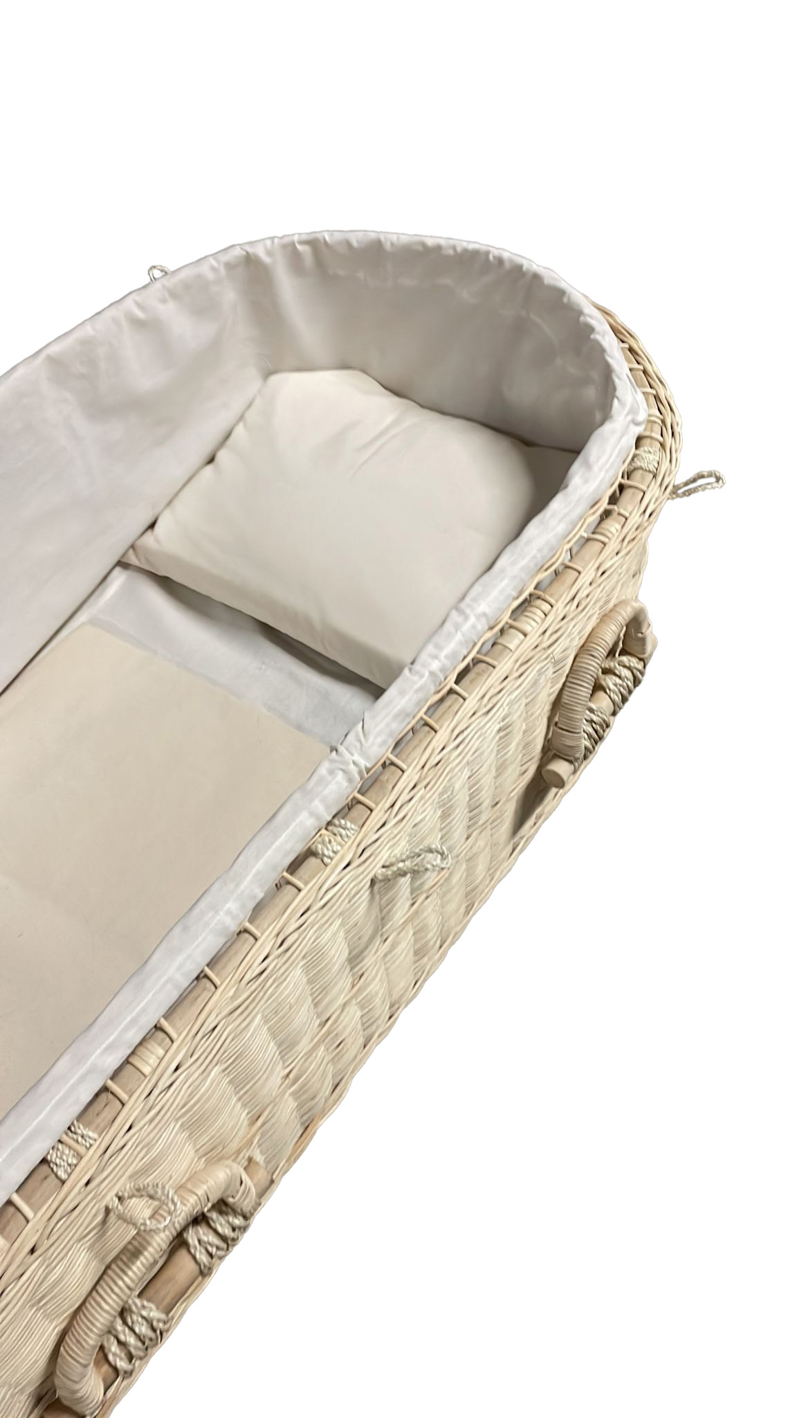 Gevlochten, fairtrade, uitvaartmand van rotan met katoenen interieur en wade