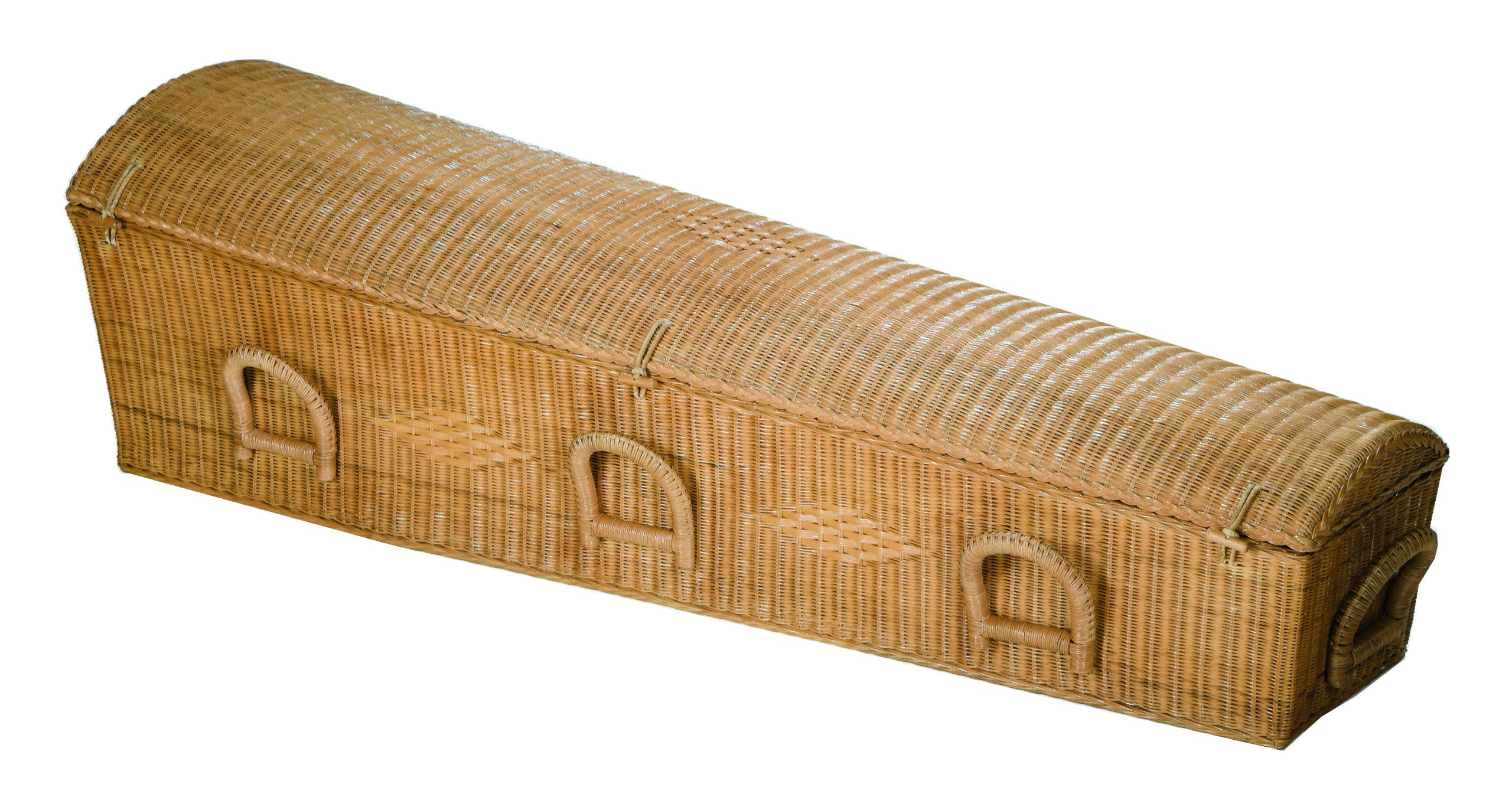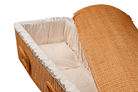 Gevlochten, fairtraide uitvaartmand van pitriet met katoenen interieur